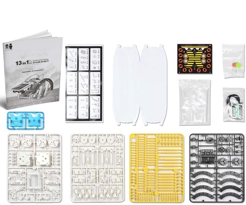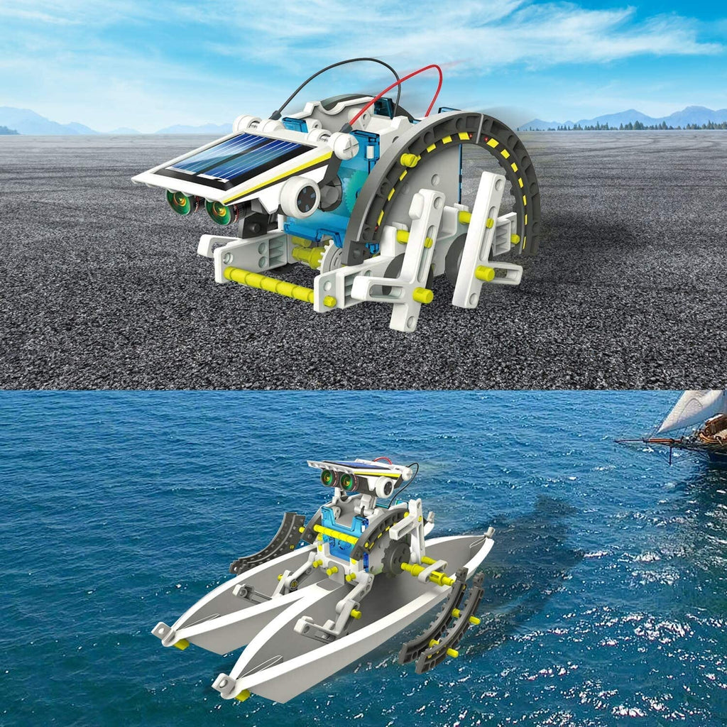 O Solar Robot permite montar 13 modelos de Robôs que se movem na terra e na água.